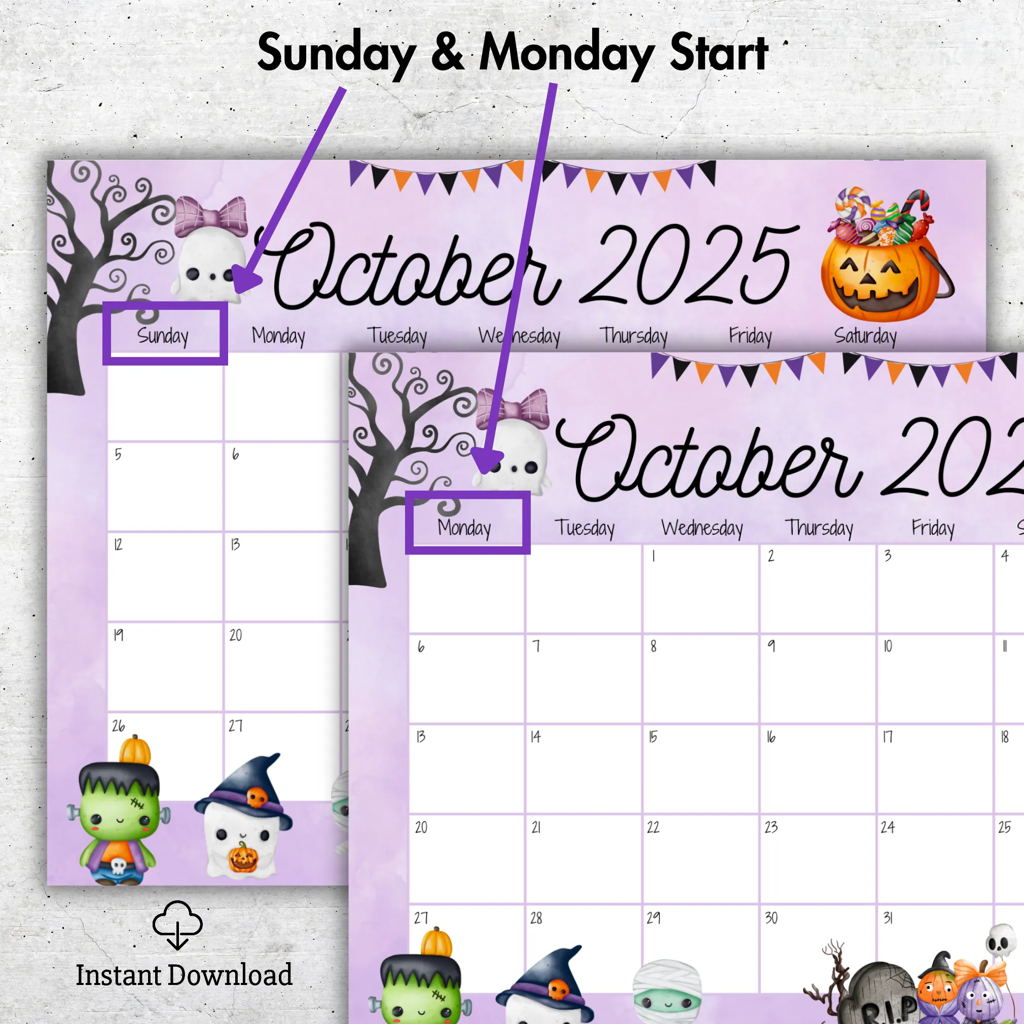 Available in both Sunday start and Monday start versions, this calendar is provided as a fillable PDF, allowing you to type directly into the date boxes for digital planning or print it for handwritten notes. Whether you?re managing Halloween events, school activities, or personal goals, this calendar makes organizing fun and visually delightful.