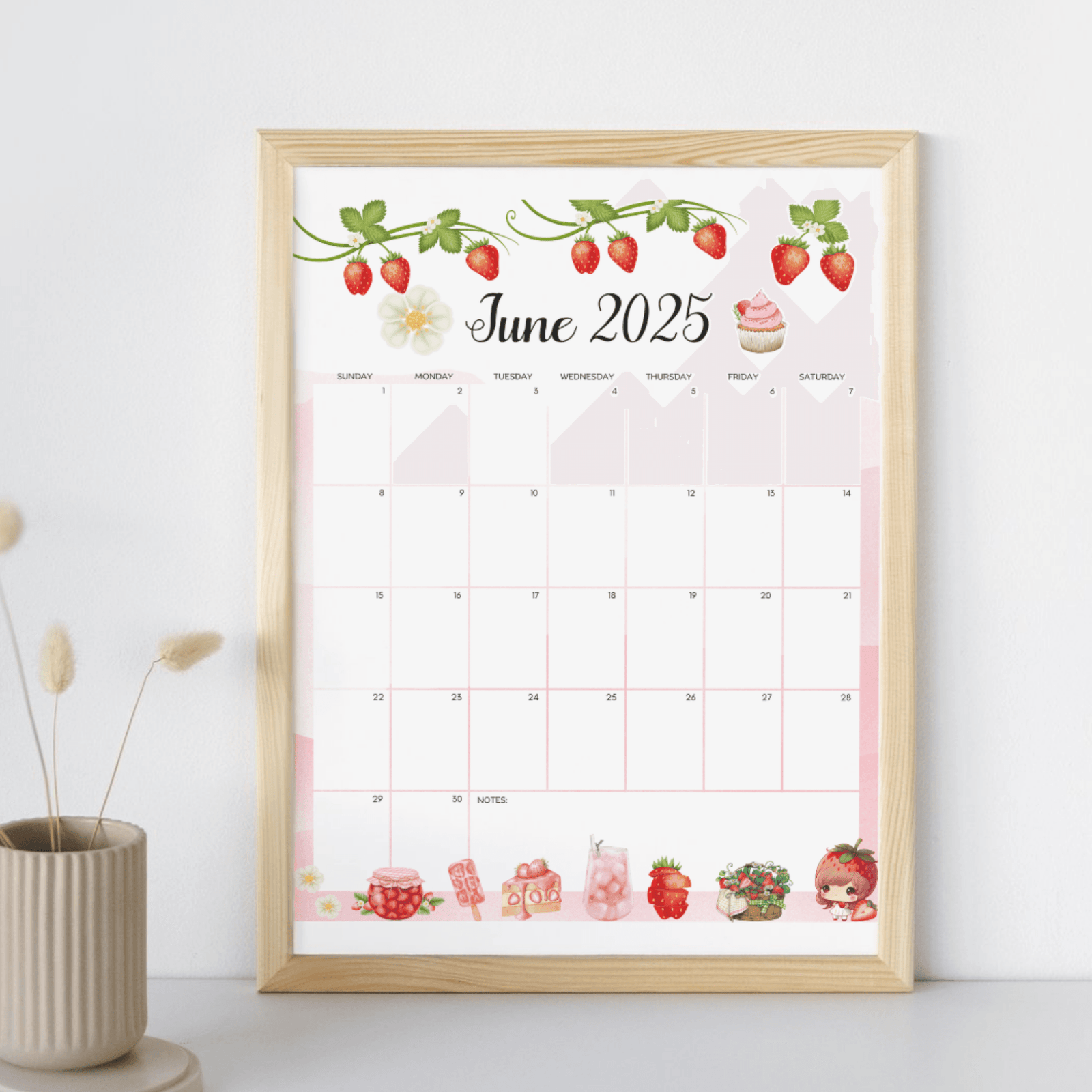 What?s Included in the Printable June 2025 Strawberry Calendar?