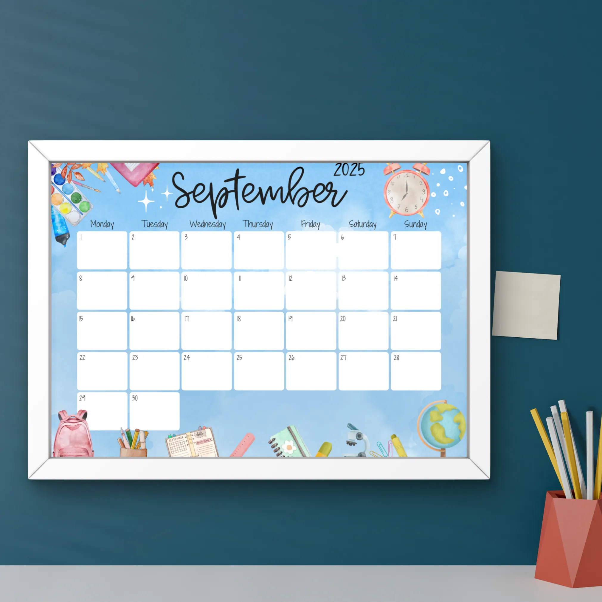 Get ready for a smooth transition into the new academic year with our Editable September 2025 Calendar for Back to School. This beautifully illustrated calendar features watercolor school-themed elements like backpacks, books, globes, and supplies ? making it perfect for teachers, parents, and students alike. Whether you’re planning lessons, organizing family schedules, or tracking extracurricular activities, this fillable September calendar is designed to keep you on track.