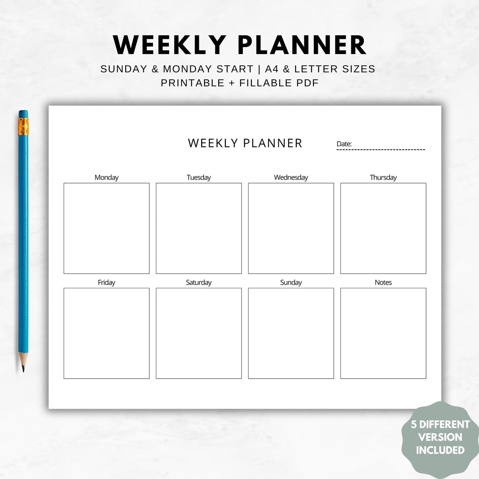 What is Included in the Weekly Planner Printable?
