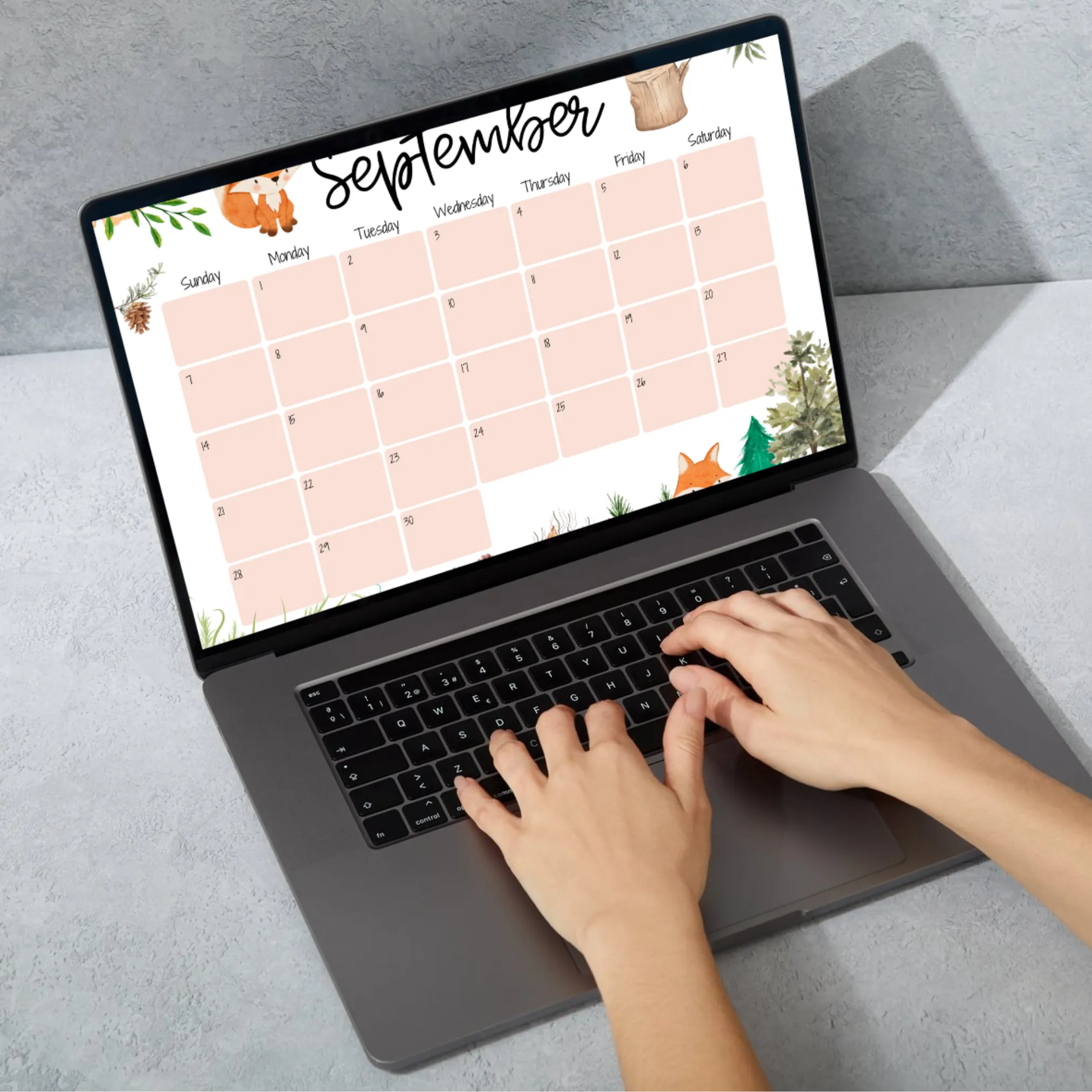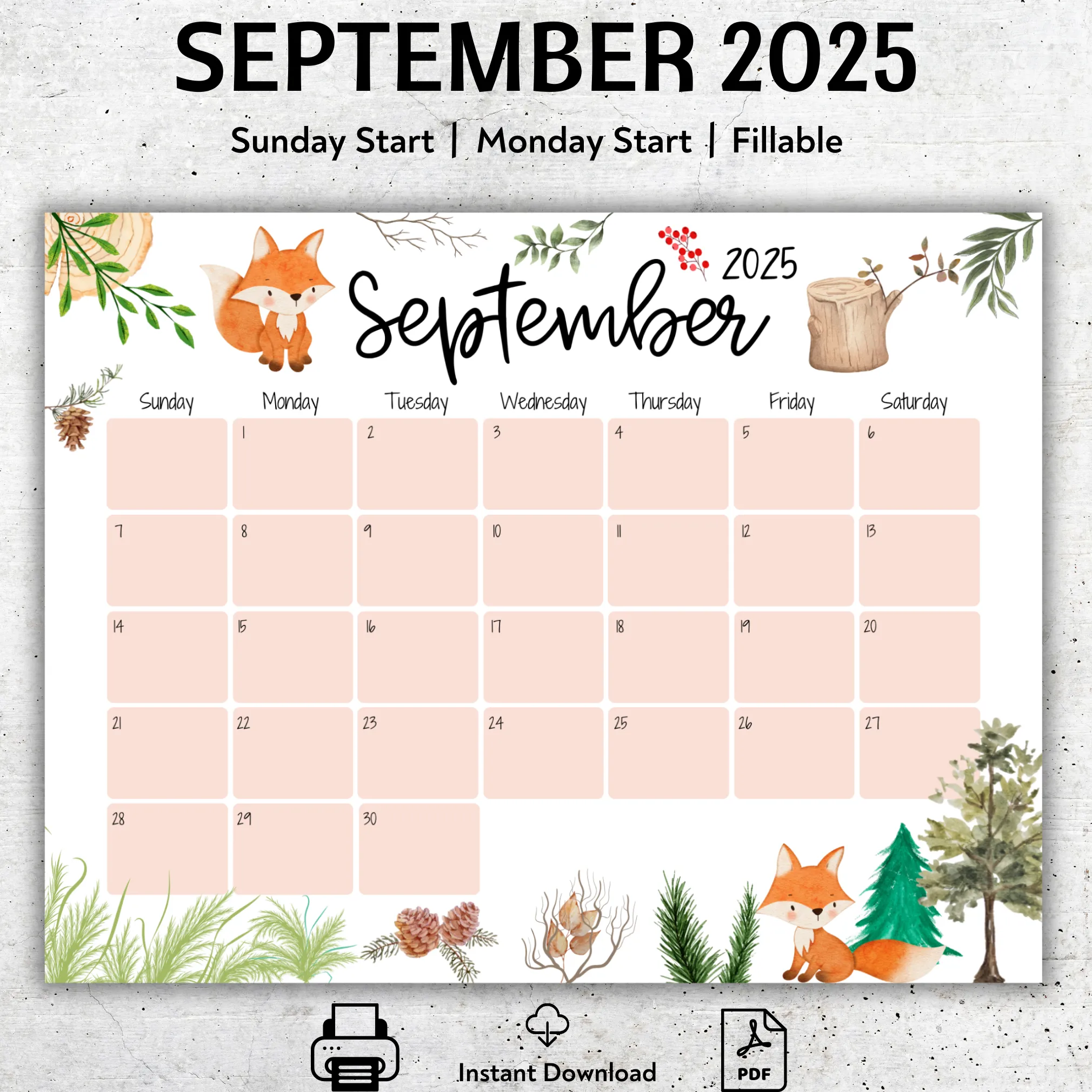Woodland Fox September 2025 Calendar ? Fillable PDF